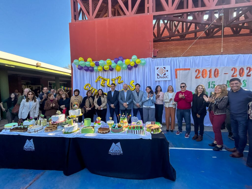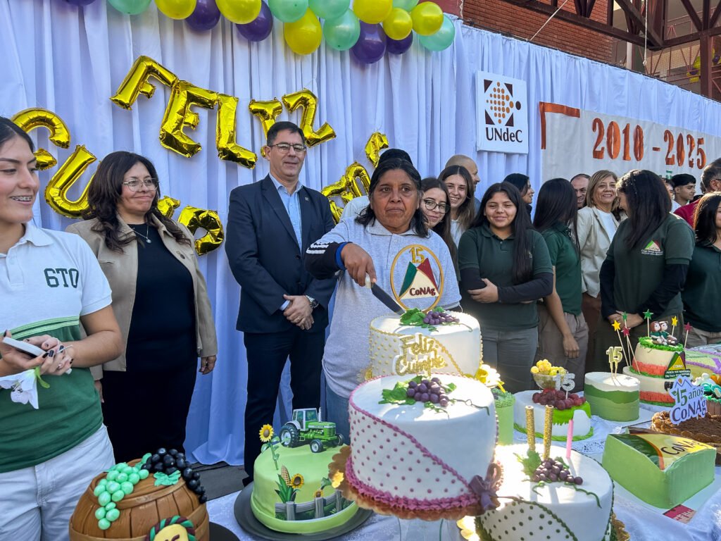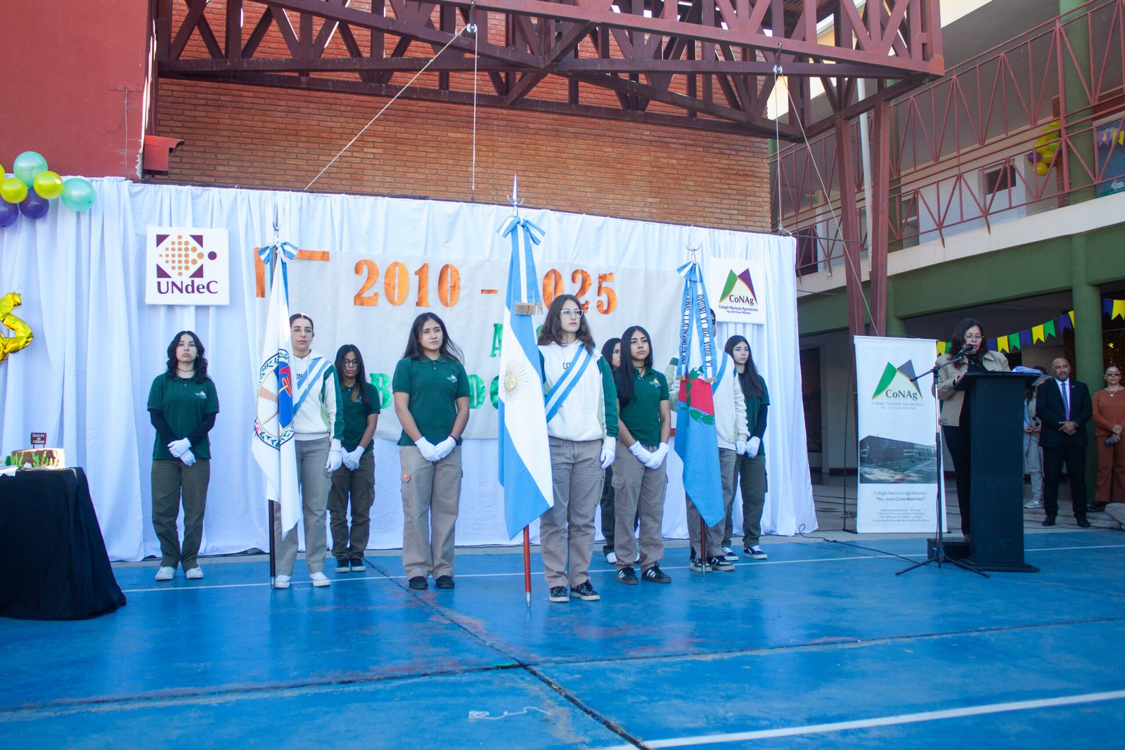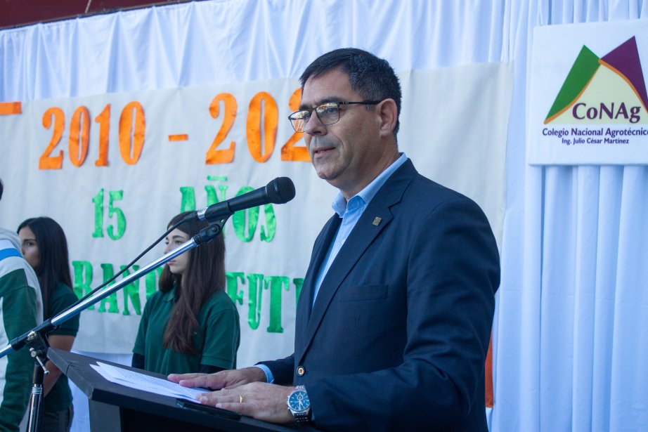 Con un emotivo acto celebrado en sus instalaciones, el Colegio Nacional Agrotécnico, «Julio César Martínez», celebró sus 15 años de trayectoria educativa. La ceremonia contó con la participación del rector de la Universidad Nacional de Chilecito, Abg. César Alberto Salcedo, el vicerrector académico, Dr. Germán Antequera, la vicedirectora del CoNAg, Prof. Marisa Acevedo, la secretaria Académica, Mgtr. Daniela de la Vega, el presidente de Cooperativa La Riojana, Alfredo Capece, en representación de la Asociación Comercio Justo, Catalina Gómez Ticac, la diputada provincial, abogada Gabriela Rodríguez, el Concejal Nicolás Brizuela, egresados y demás autoridades académicas de ambas instituciones educativas.
