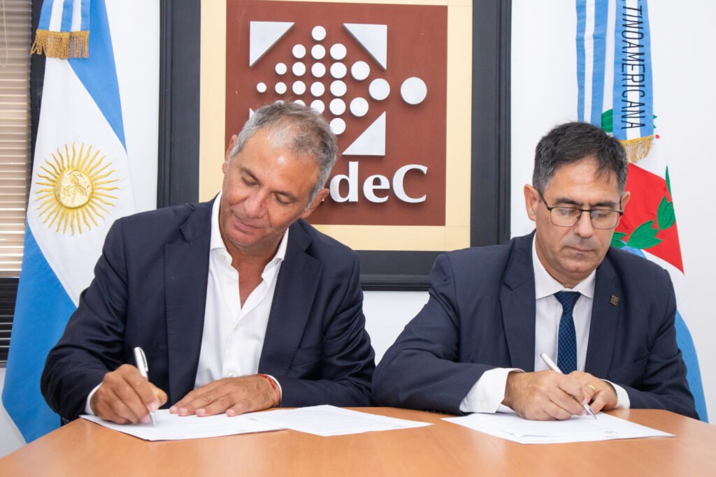 Para culminar la jornada, las autoridades visitaron el Laboratorio de Energías Renovables de la UNdeC, donde se desarrollarán las instancias prácticas de la capacitación. Y posteriormente, procedieron a la firma del Convenio Específico de Colaboración entre ambas instituciones, cuyo propósito es el suministro de un sistema de Paneles Solares de Energía, que posibilitará las prácticas de formación y de capacitación de uso, la obtención de datos y la gestión de parámetros en proyectos específicos a diseñarse por ambas instituciones.