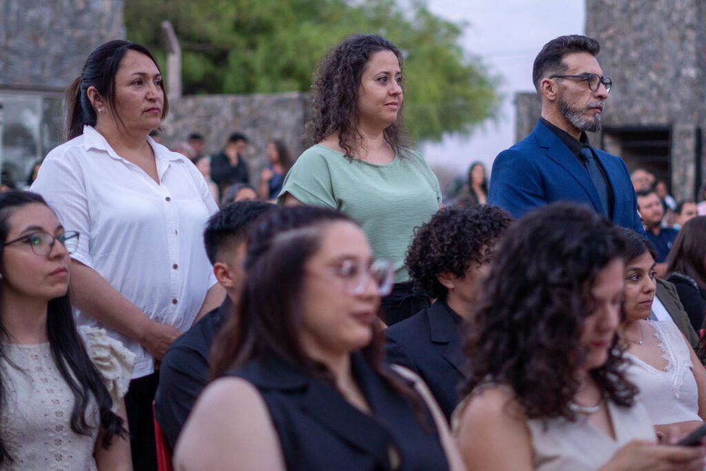 En representación de los egresados, Hernán Medina, de la Licenciatura en Comunicación Social, ofreció unas sentidas palabras. Recordó anécdotas y desafíos vividos durante los años de estudio y expresó: “Este camino de sencillo no tiene nada, pero nunca debemos perder de vista lo afortunados que somos de haberlo recorrido”. Agradeció el apoyo de sus familias, docentes y compañeros, y celebró el logro compartido de toda la comunidad universitaria.