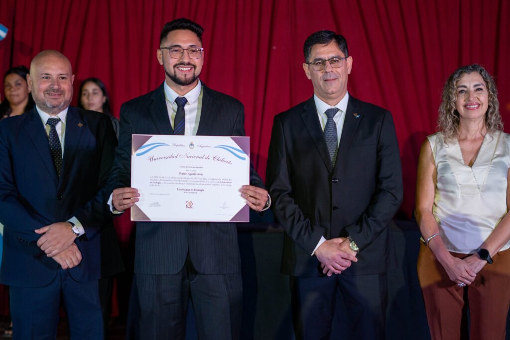 En otro pasaje de su discurso, hizo hincapié en la responsabilidad social de los egresados: “Como profesionales formados en el sistema universitario público, debemos devolver a la comunidad la inversión que ha realizado, a través de un ejercicio profesional comprometido”. Asimismo, advirtió sobre el contexto actual: “En tiempos de altos niveles de pobreza, es cuando más debemos apostar a la educación pública. El conocimiento y la formación de los jóvenes son las bases en las cuales se asienta el desarrollo de nuestra comunidad, desarrollo imprescindible para alejarnos de estos niveles de pobreza y exclusión”.