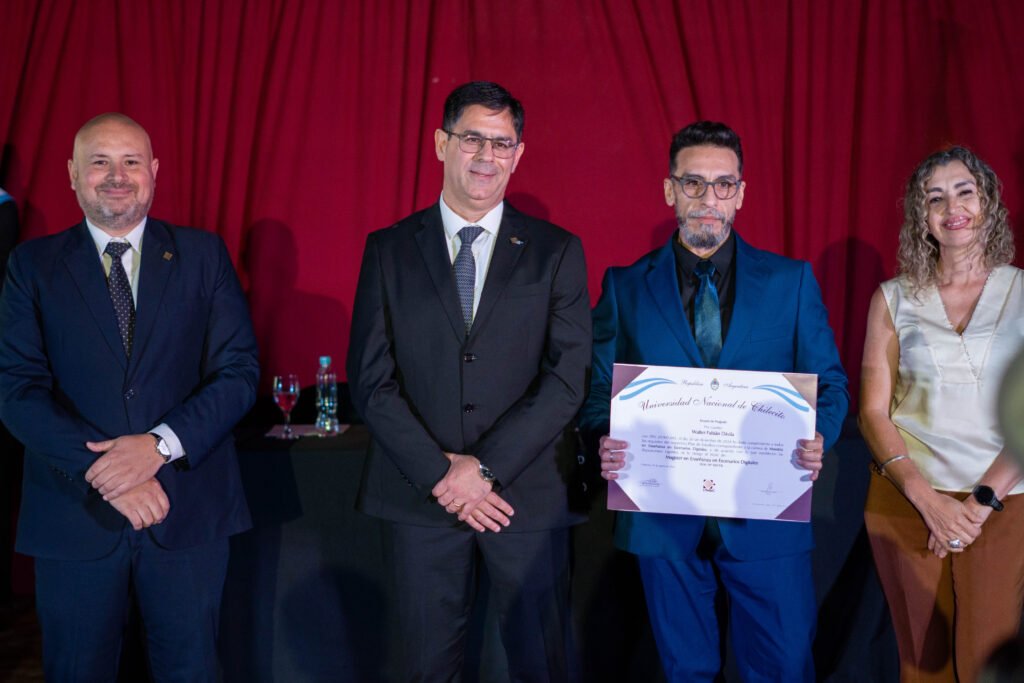 Para concluir la ceremonia, el rector César Salcedo brindó un mensaje cargado de convicción y defensa del sistema universitario argentino. “Estos momentos son importantes porque, cuando el sistema universitario está siendo cuestionado, es cuando más debemos mostrar sus resultados”, afirmó.