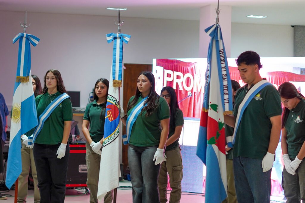 Los estudiantes de 6° A, B y C ingresaron al salón en medio del aplauso del público, dando inicio al momento central de la noche. También fueron reconocidos los nuevos abanderados y escoltas de la Bandera Nacional, Provincial y de la Libertad Civil, cuyos promedios reflejan excelencia académica y compromiso.