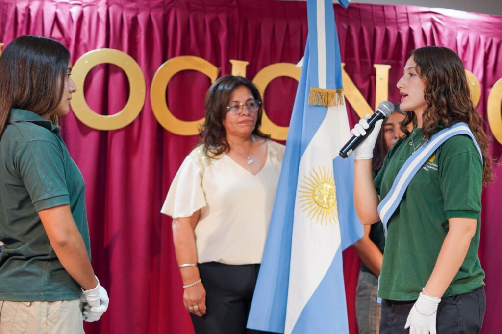 Finalmente, la Bandera Provincial fue portada por Ana Sofía Juárez (promedio 9,67), acompañada por Juan Cruz Martínez (promedio 9,69) y María Paula Hanna (promedio 9,58). Estos jóvenes representan el compromiso, la dedicación y la excelencia académica que distinguen a la institución.