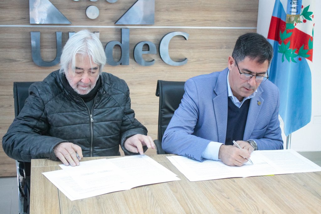 La rúbrica estuvo a cargo del rector de la UNdeC, Abg. César Alberto Salcedo, y del presidente del Colegio de Agrimensores, Ing. Agr. Alberto Fernando Rocher,