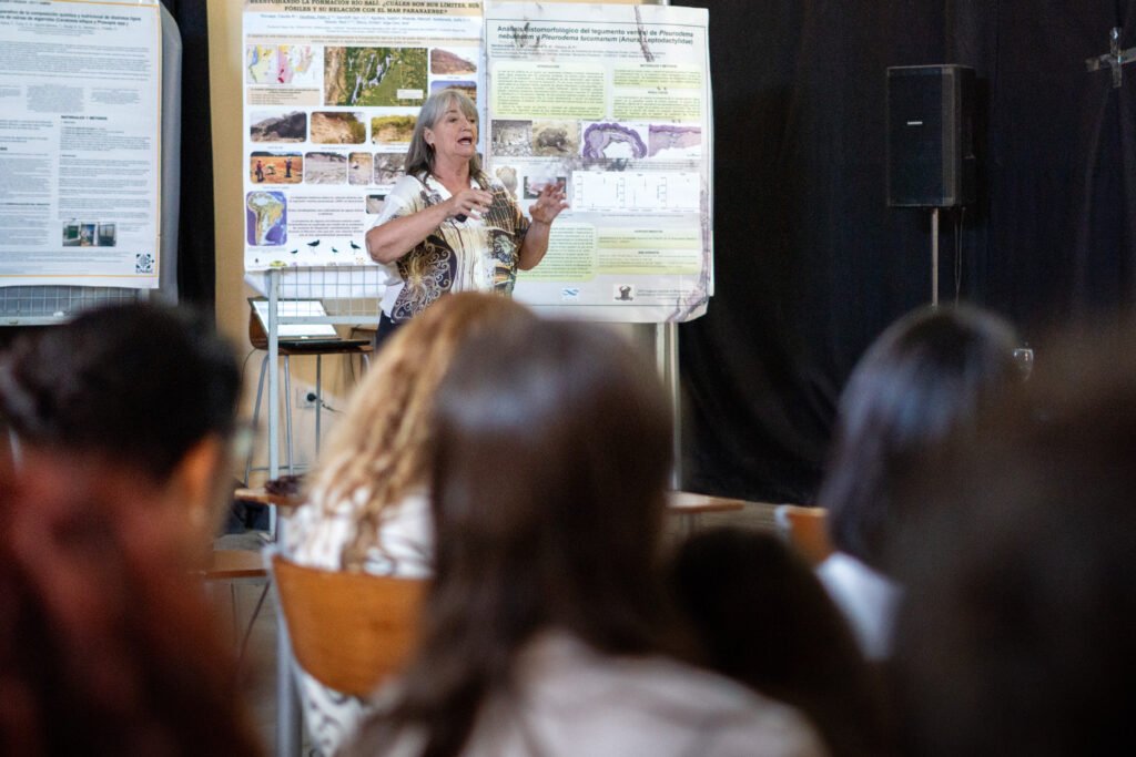 Luego, de manera virtual, la Dra. Gloria Jaime presentó los avances de su investigación sobre diversidad de flora nativa criptogámica y fanerogámica en la región centro-oeste de La Rioja, ofreciendo un panorama detallado de la riqueza vegetal local. En continuidad, la Dra. Mariana Jausoro profundizó en estudios complementarios que amplían el conocimiento sobre estos ecosistemas. El ciclo de charlas culminó con la exposición de la Dra. Susana Popich, quien analizó los mecanismos de comunicación entre plantas, herbívoros y carnívoros, destacando la complejidad de estas interacciones ecológicas.