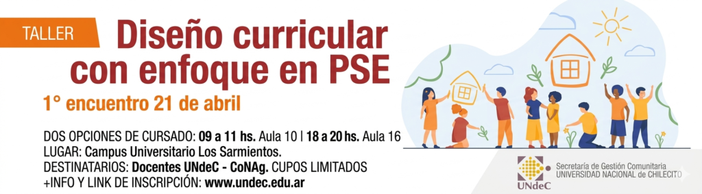 La UNdeC abre la inscripción a los talleres de diseño curricular con enfoque en Prácticas Sociales Educativas (PSE), una propuesta destinada a docentes que busca fortalecer la incorporación de experiencias de aprendizaje situado en las asignaturas. La capacitación se desarrollará en modalidad de encuentros presenciales con dos opciones horarias y cupos limitados.