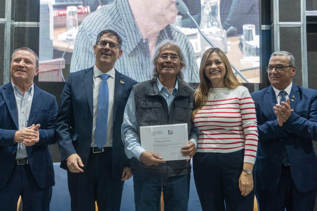 Para finalizar, el rector César Salcedo expresó recibir esta distinción con la responsabilidad que simboliza para esta universidad que ha decidido involucrarse firmemente en la construcción de una sociedad más justa y democrática, “respetando fundamentalmente la historia” e impulsada por “la Memoria, la Verdad y la Justicia”. Hacia dicho horizonte, señaló, “encaminamos nuestros esfuerzos desde el aula, la investigación y la extensión”. Asimismo, agregó: “Formamos ciudadanos comprometidos con las causas sociales, con pensamiento crítico y sentido de la solidaridad”, respetuosos del Estado como organización que asegura los “derechos fundamentales y una vida digna para cada ciudadano”.