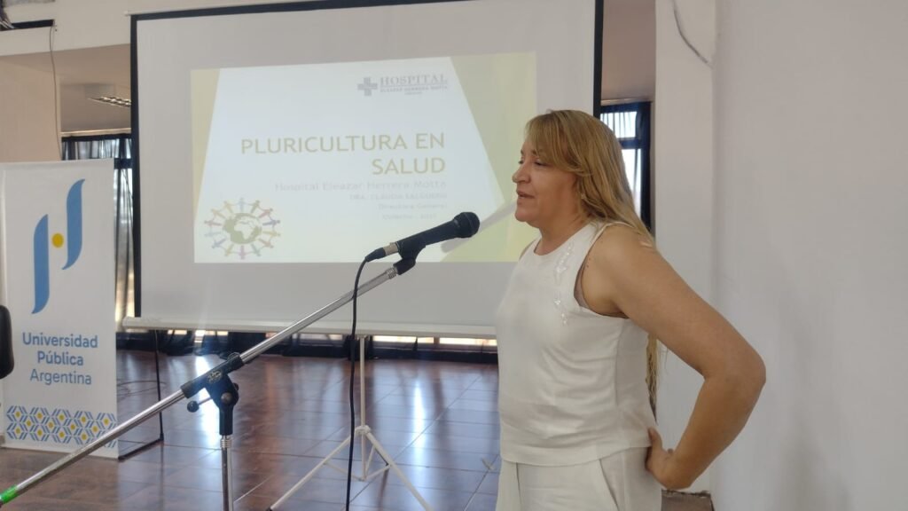 La Dra. Claudia Salguero, directora del Hospital Eleazar Herrera Motta, abrió el ciclo de exposiciones abordando la relación entre salud y cultura, destacando el rol del hospital como actor comunitario en la prevención, promoción y acompañamiento.