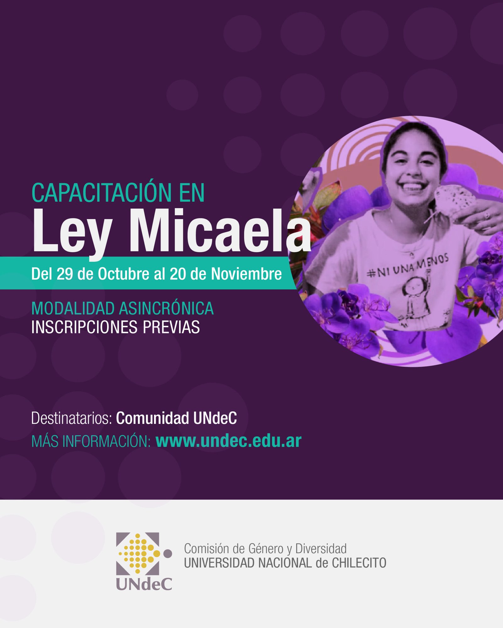 Desde el año 2022, desde la Comisión de Género y Diversidad – UNdeC  ofrece en distintos formatos talleres y capacitaciones en el marco de Ley 27499 «Ley Micaela». La propuesta se enmarca en las líneas de acción  de  La Red Interuniversitaria por la Igualdad de Género y contra las Violencias (RUGE – CIN) propuestas para las universidades públicas de todo el país.